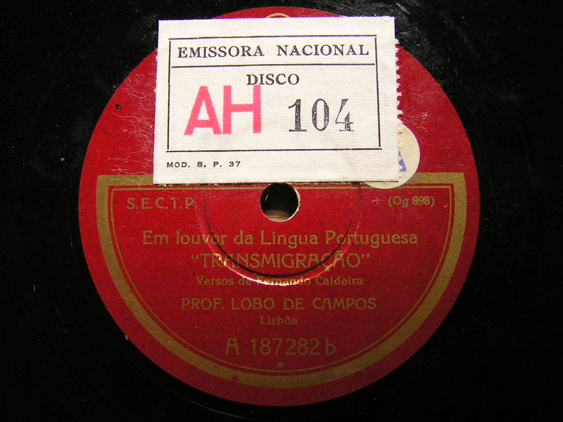 Selo da Emissora Nacional colado sobre a metade superior da bolacha e ocultando outros selos; tem a numeração AH 104Está registado na S.E.C.T.P., pelo que a edição será posterior a 1924.